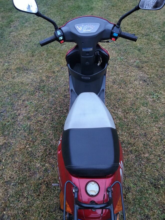 Skuter od 11 lat był nie użytkowany, bardzo zadbany. W tym roku podjąłem próbę aby go ożywić. Dlatego został w nim wymieniony gaźnik, cały układ paliwowy, akumulator, prawy włącznik świateł oraz wyczyszczony zbiornik paliwa. Skuter jeździ, ale bardzo ciężko go uruchomić, należałoby go chyba podregulować. Nie mam czasu grzebać się przy nim więc w takim stanie chcę go sprzedać.